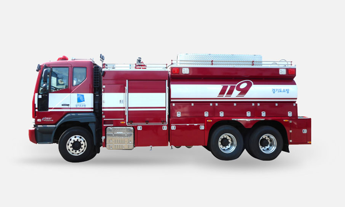 소화전이 없는 화재 현장에서 다른 차보다 월등한 용수적재용량을 이용하여 화재 진압 활동시 용수공급이 끊어지지 않도록 지원하는 역할을 하는 차량입니다. 펌프차에 물을 공급하는 차량으로 펌프차보다 큰 물탱크를 가졌으며, 펌프차보다 짧은 펌프를 달고 있어서 물탱크차만으로도 작은 화재를 진압할 수 있습니다. 용량은 톤수의 60~70% 가량이며, 16톤의 경우는 약 1만 2천리터 정도 입니다.