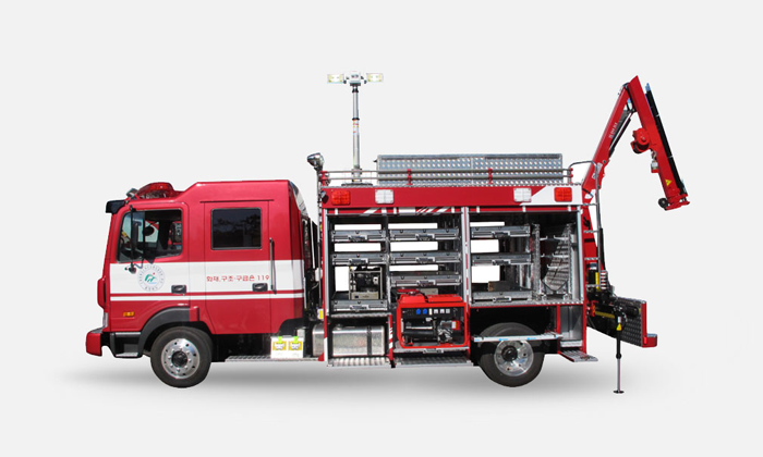 화재나 교통사고, 수난사고, 폭발사고, 항공기 추락사고 등 각종 재난상황에서 구조활동에 필요한 인력과 지원 장비들을 수송하는 소방차량입니다. 인명구조용 장비와 화재 진압시 필요한 대량의 장비들을 운반하며 차량 후방에 크레인이 장착되어 있다. 주로 차량 구난이나 크지 않은 중량물 이동에 쓰이고 있습니다.
